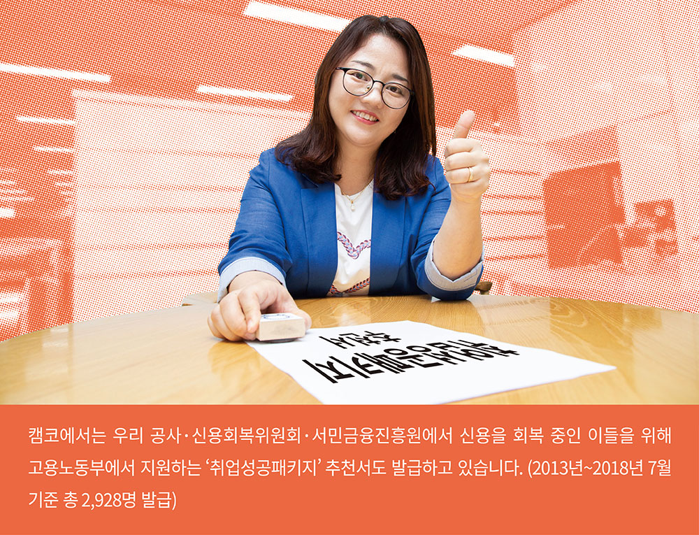삶은 고행이라는 말도 있듯이 세상살이에는 언제나 여러 어려움이 따르기 마련입니다. 하지만 그중에서도 경제적 어려움은 특히나 우리의 눈앞을 캄캄하게 하고 내일을 더욱 막막하게 만들곤 하지요. 여기, 취업을 통해 경제적 어려움을 타파하고 싶지만 마음처럼 되지 않아 힘겨워하는 이들을 도와 재기의 불을 밝히는 캠코 가계자활지원부 취업지원팀을 소개합니다.