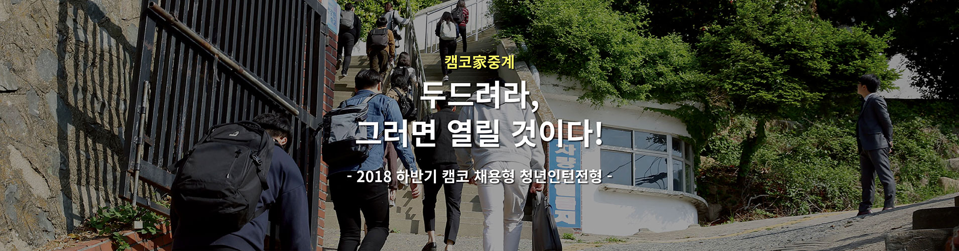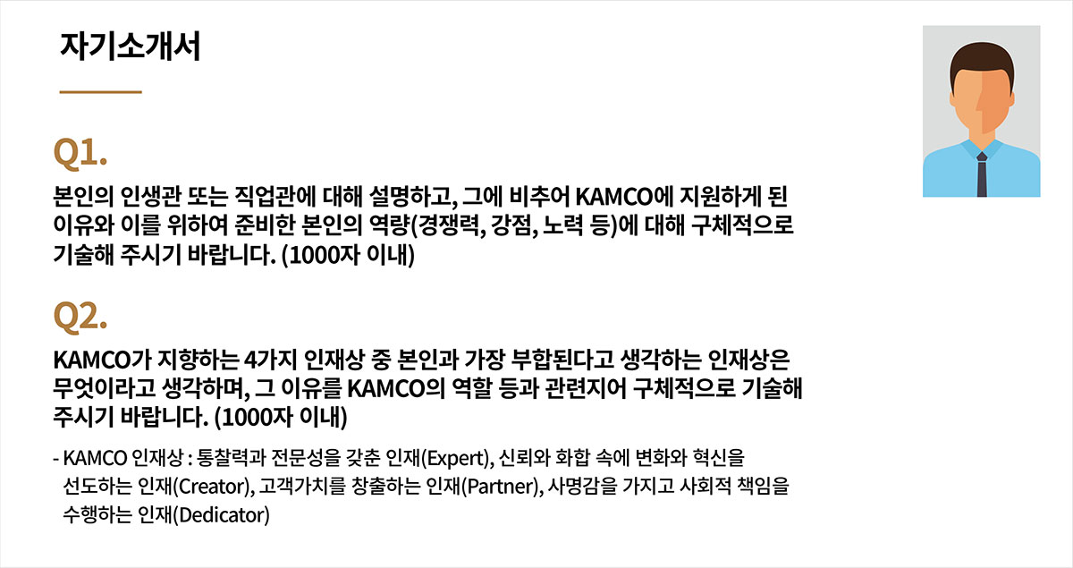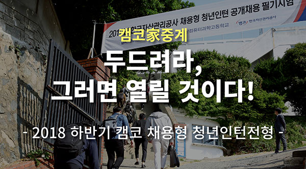 하반기 공채 시즌이 본격 시작되었습니다. 취업하려면 학력, 학점, 토익 점수가 필요하다는 의미의 ‘취업 3종 세트’에서 자격증과 어학연수를 더한 취업 5종 세트로 확장되더니 최근에는 인턴 등을 포함한 취업 9종 세트라는 신조어까지 등장했습니다. 이 단어들은 취업난에 허덕이는 청년 세대들의 애환을 고스란히 담고 있는데요. 어려움 속에서도 기업이 원하는 인재상과 채용 절차, 유의점 등을 꼼꼼히 살펴보며 막판 스퍼트를 달리고 있을 취업준비생들을 위해 캠코가 준비했습니다. 자, 지금부터 ‘2018 하반기 캠코 채용형 청년인턴전형’에 대해 속속들이 파헤쳐 볼까요?