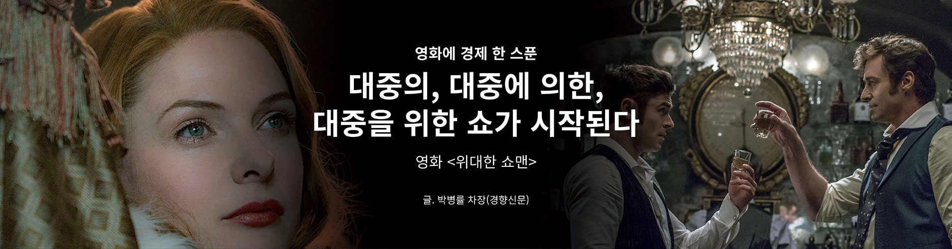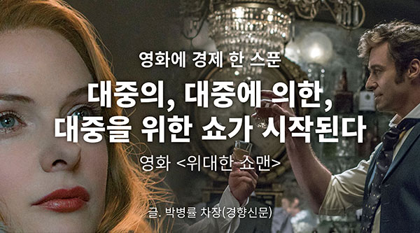 마이클 그레이시 감독이 메가폰을 잡은 뮤지컬 영화 <위대한 쇼맨>은 엔터테인먼트 산업의 개척자로 불리는 피니어스 테일러 바넘(P.T. 바넘)의 이야기다. 가난한 재단사의 아들로 태어난 바넘은 풍부한 상상력을 바탕으로 쇼비즈니스를 시작한다. 기괴한 것들을 대중에게 보여주는 ‘프릭쇼’는 대중의 호기심을 이끌어내는 데 성공한다. 엄청난 흥행을 거두지만 동시에 수많은 윤리적·도덕적 논쟁도 낳는다. B급 연출가에서 벗어나고 싶어 했던 바넘은 스웨덴 오페라 가수 제니 린드의 미국 전국투어를 성사시키며 주류 세계로 진입한다. 마침내 부와 명예를 얻은 순간, 그러나 가족들은 떠나고 달라진 그의 모습에 실망한 단원들은 외면한다. 불까지 나며 극장조차 타버린다. 모든 것을 잃은 순간, 그럼에도 그를 끝까지 신뢰한 단원들의 믿음으로 재기에 성공한 그는 이동식 천막 공연을 생각해낸다. 그리고 이것이 그를 세계적으로 유명하게 만든 서커스였다.