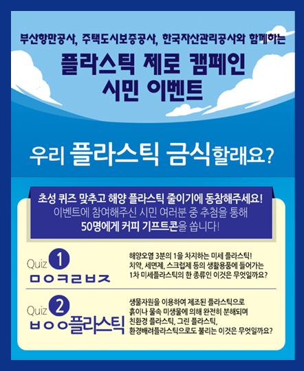 10만 마리씩 목숨을 잃고 오염된 생태계는 먹이사슬을 통해 다시 우리 삶까지 위협합니다. 이에 해외 선진국들은 앞 다퉈 플라스틱 제로 법안을 도입하고 우리나라 역시 대형마트 내 1회용 비닐봉투 사용 제한, 카페 매장 내 플라스틱 일회용 컵 사용 금지 등 대책 마련에 나섰는데요. 대한민국의 가치를 높이는 캠코도 환경의 가치를 지키는 「플라스틱 제로 캠페인」으로 이에 동참했습니다.