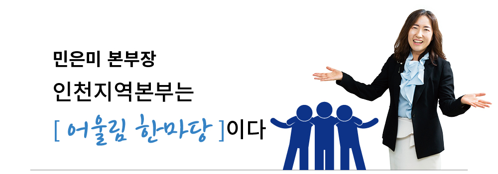인천지역본부는 이 지역 출신들이 많아 순환근무를 하더라도 다시 돌아오는 분들이 많습니다. 새들이 둥지를 찾아 날아오듯, 인천지역본부 역시 직원들에겐 ‘친정집’이자 ‘둥지’ 같은 곳이 아닐까요?