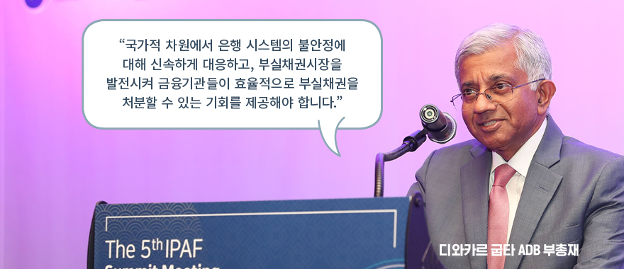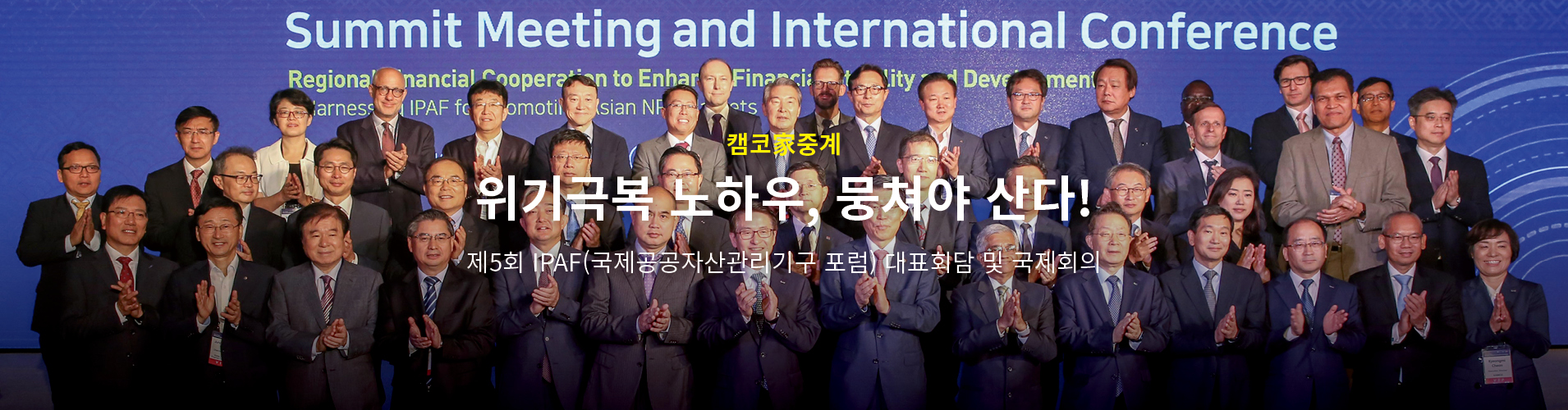 우리는 이미 1997년 여름 태국-말레이시아-인도네시아 등의 동남아시아 국가로부터 번진 외환위기를 경험하면서 아시아 지역 내 경제문제의 공동 대처가 얼마나 중요한지 깨달은 바 있습니다. 이에 외환위기 당시 부실채권인수·정리 전담기관으로 공적자금 39.2조 원을 투입하여 금융회사 보유 부실채권 111.6조 원을 인수, 48.1조 원(123%)을 회수하는 전 세계적으로 유례없는 성과를 거두었던 캠코(한국자산관리공사)는 아시아 지역 내 경제문제를 공동으로 대처하고 토론할 수 있는 장을 마련하였는데요. 지금부터 그 생생한 회담 현장으로 함께 모시겠습니다.