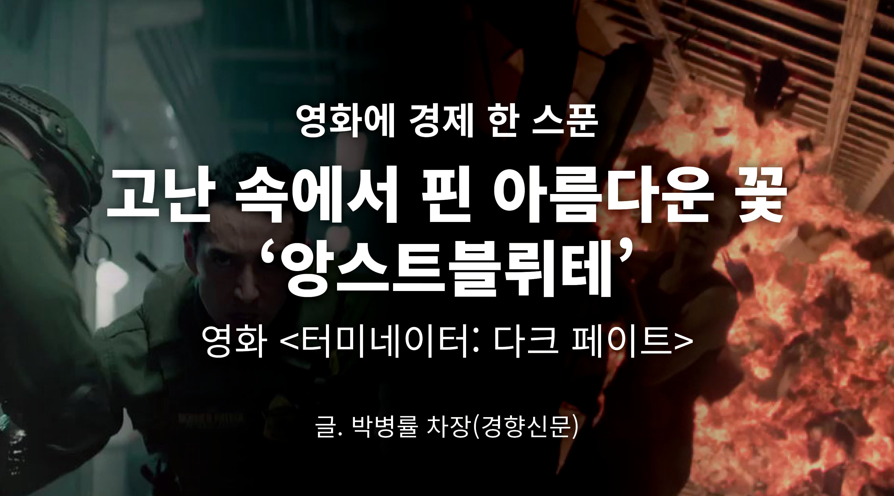 매달 가계부도 제대로 못쓴다던 새라 코너를 이같이 극적으로 변화시킨 동기는 무엇일까. 아무리 도망가 본 들 터미네이터의 추격을 피할 수 없다는 것을 깨달은 그녀는 강해지는 쪽을 택했다. 이른바 ‘앙스트블뤼테’다. 앙스트블뤼테란 독일어로 불안을 뜻하는 ‘앙스트(Angst)’와 개화를 뜻하는 ‘블뤼테(Blute)’의 합성어로 ‘불안 속에 피는 꽃’이다. 생명체는 자신의 생존이 위태로워질 경우 사력을 다해 자신의 마지막 꽃을 피우고 씨앗을 맺는다. 자신의 유전자를 후대로 잇기 위해서다. 때문에 불안 속에 피는 꽃은 평소보다 더욱 화려하고 유혹적이다. 다시 말해 앙스트블뤼테는 고난을 이겨낸 아름다움을 말한다.