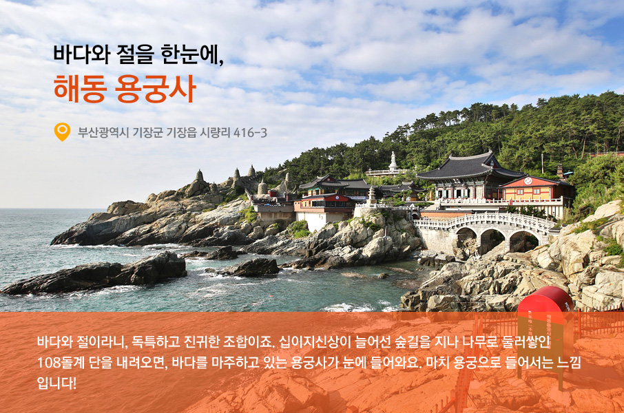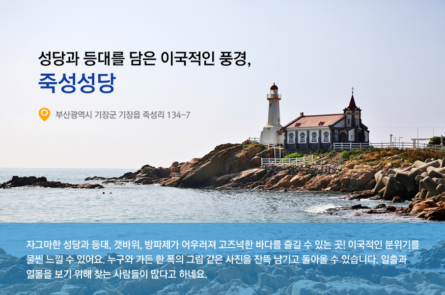 부산에 ‘해운대’, ‘광안리’만 있나요? 여름철 붐비는 해수욕장보다 선선한 가을바람 맞으며 드라이브할 수 있는 부산의 다른 모습을 소개합니다. 눈이 탁 트이는 바다, 싱싱한 해산물, 로맨틱한 카페까지. 여기가 어디냐고요? 맛 좋고 물 좋은 ‘기장’, 하루 만에 둘러보기! 코스 짜드릴께요~ 이번 가을에 기장에서 하태핫태!