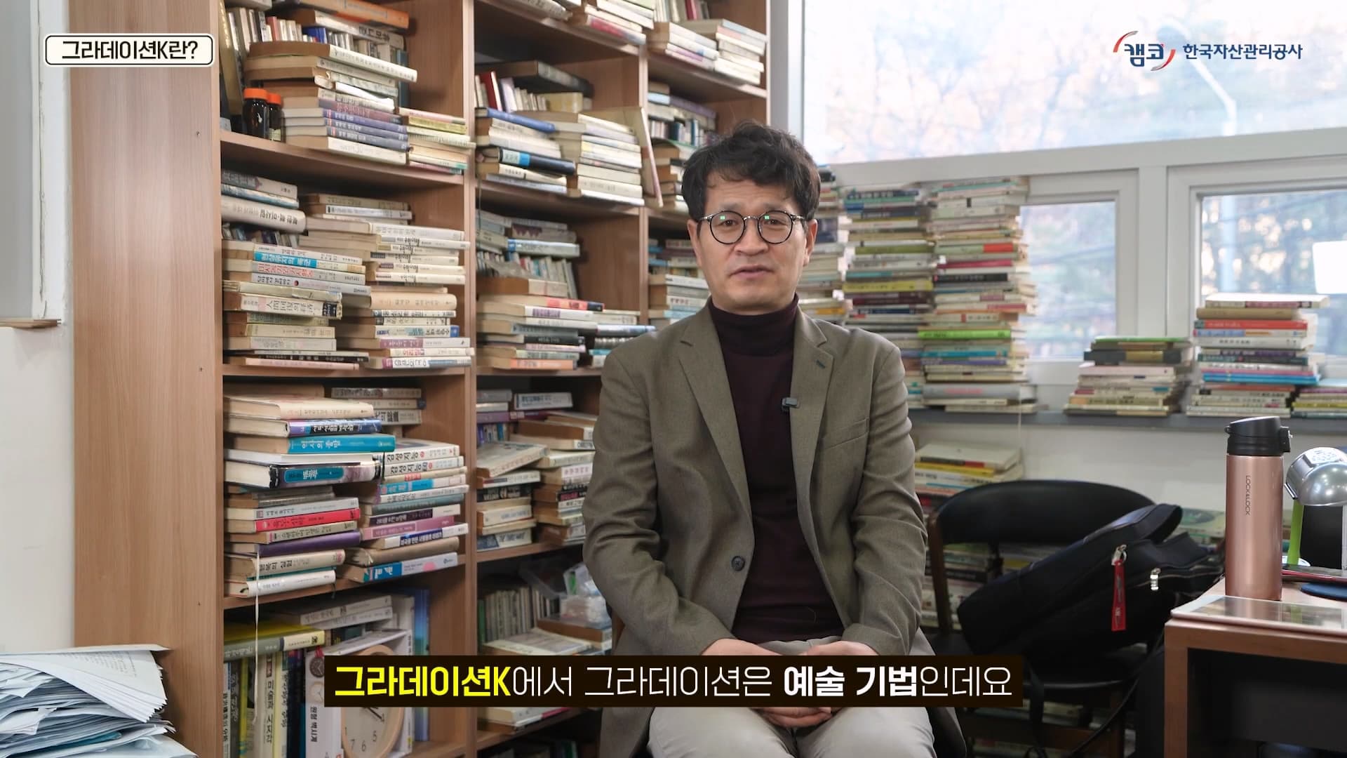 어떤 색조나 명암, 질감을 단계적으로 바꾸는 예술 기법을 ‘그라데이션’이라 하는데요. '그라데이션K'란 우리나라가 점차 다른 문화를 받아들이기도 하고 우리나라 방식을 결합시키기도 하면서 새로운 스타일을 만들어내는 과정을 상징하는 단어라고 볼 수 있습니다. 즉, 한국적인 것과 세계적인 것 사이의 경계가 그라데이션 되듯 점차 흐려지면서 융합과 조화가 이루어지는 현상을 반영한 단어이죠.