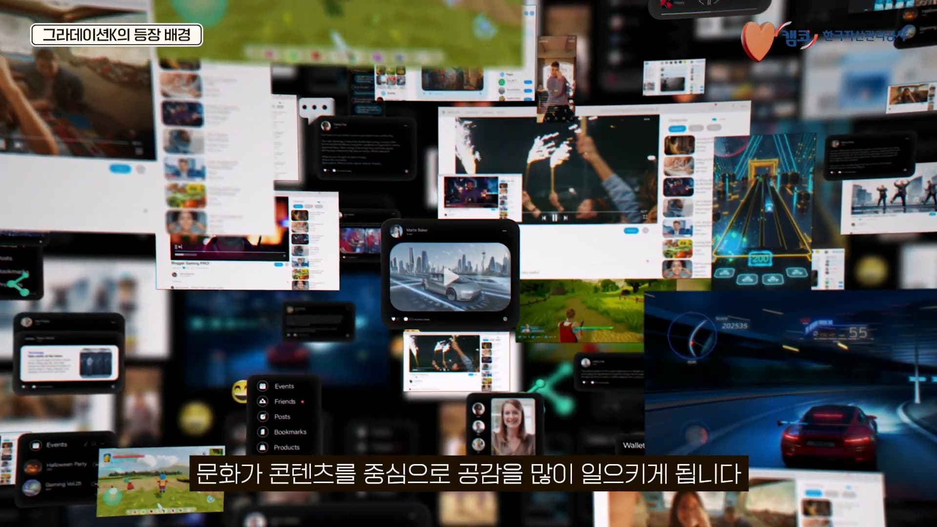 '그라데이션K'는 현실과 이상의 융합이 '문화'로 실현된 것인데요. 디지털화가 진전되면서 문화가 '콘텐츠'를 중심으로 많은 공감을 불러일으키게 됩니다. 특히 코로나19때 비대면으로 우리나라 콘텐츠가 많이 확산되면서 사람들의 한국에 대한 이미지가 좋아지게 됐고, 한국 방문의 증가로 이어지게 되면서 '그라데이션K'가 자연스럽게 정착되었다고 볼 수 있겠습니다.