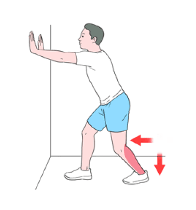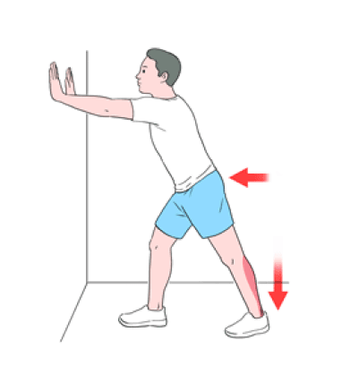 - 양손으로 벽이나 의자를 잡고, 한 발은 앞으로 다른 한 발은 뒤로 뻗는다.