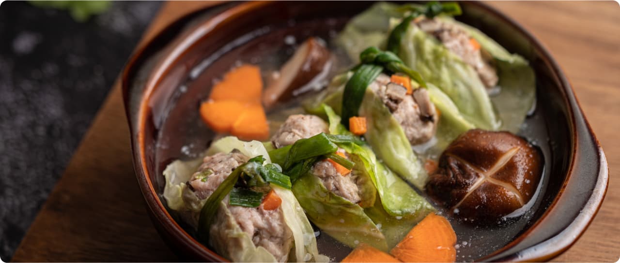 양배추 잎 10장 정도, 다진 돼지고기 200g, 다진 마늘 1큰술, 다진 파 1큰술, 당근 약간(작게 썰기), 표고버섯 2~3개(슬라이스 또는 통으로), 국간장 1큰술, 소금, 후추 약간, 다시마 육수 또는 멸치 육수 5컵, 달걀 1개(선택사항)